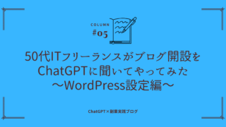 Uncategorized第6回 「50代ITフリーランスがブログ開設をChatGPTに聞いてやってみた~ブログ管理ツール設定編~|月3万円を目指す実践記録」