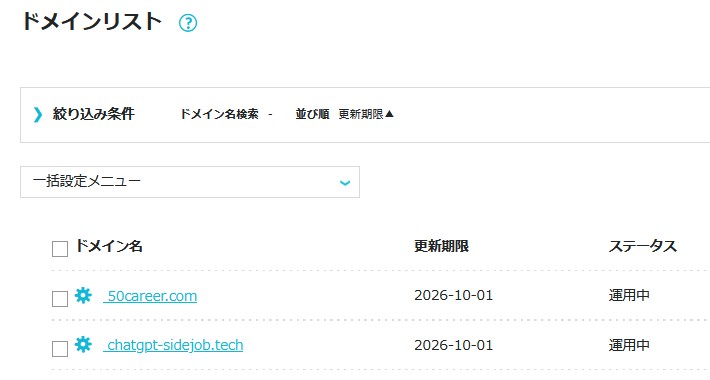 ドメインまで取得できました!