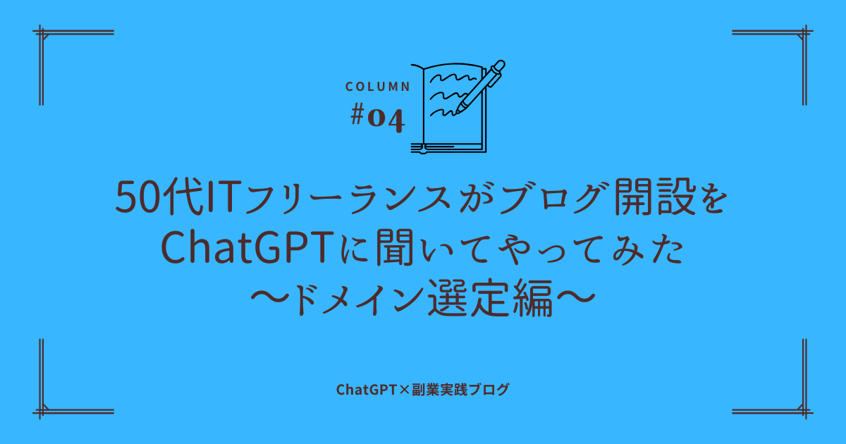 師匠に「50代からのITキャリア×投資・副業ブログとこのブログをChatGPTに相談しながら月3万円を目指すブログ2つのドメインでおすすめを教えてください。」