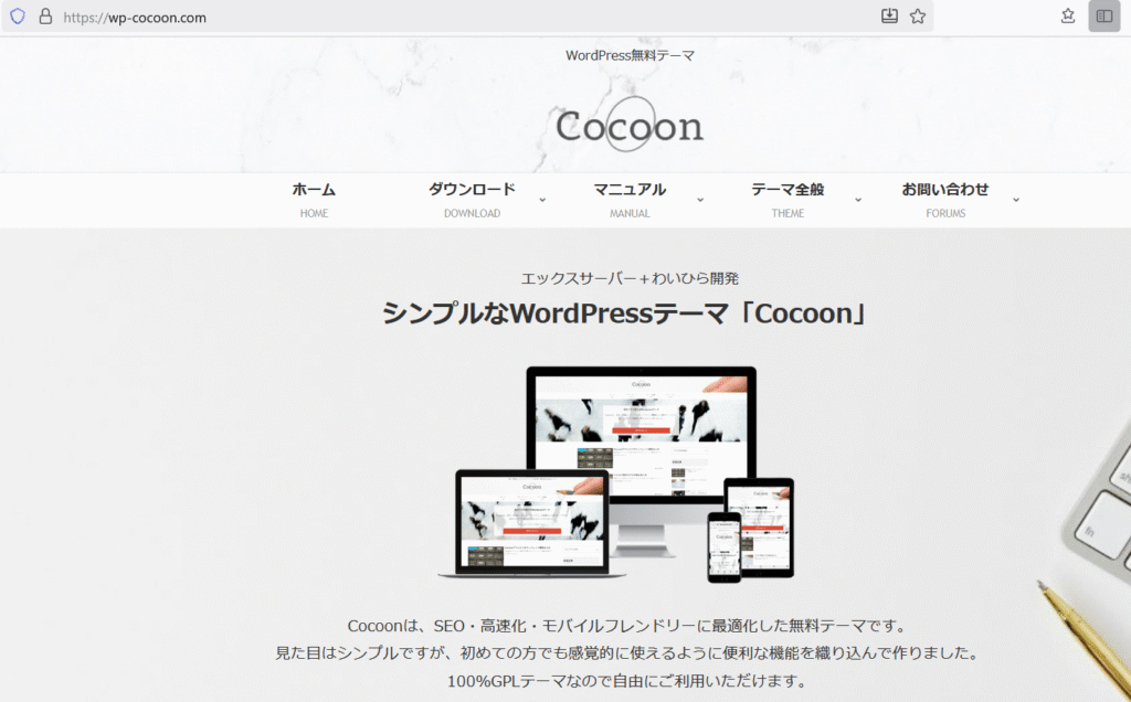 🥇 Step 1:Cocoon公式サイトにアクセス