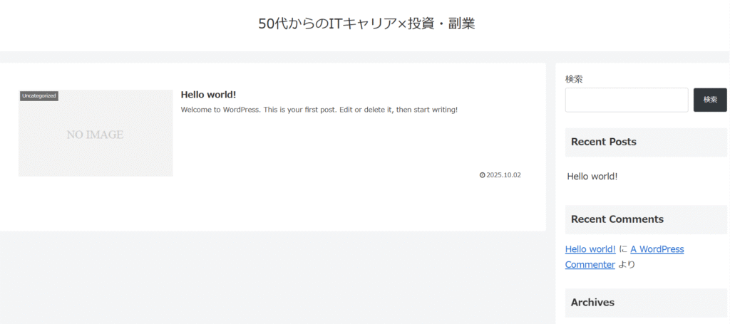 • サイトにアクセスすると、あなたの独自ドメインでWordPressが表示される