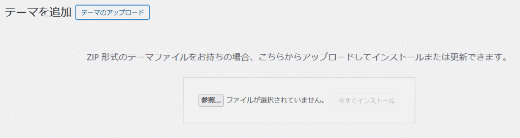 下記画面から、ダウンロードした親テーマと子テーマをアップロードします。