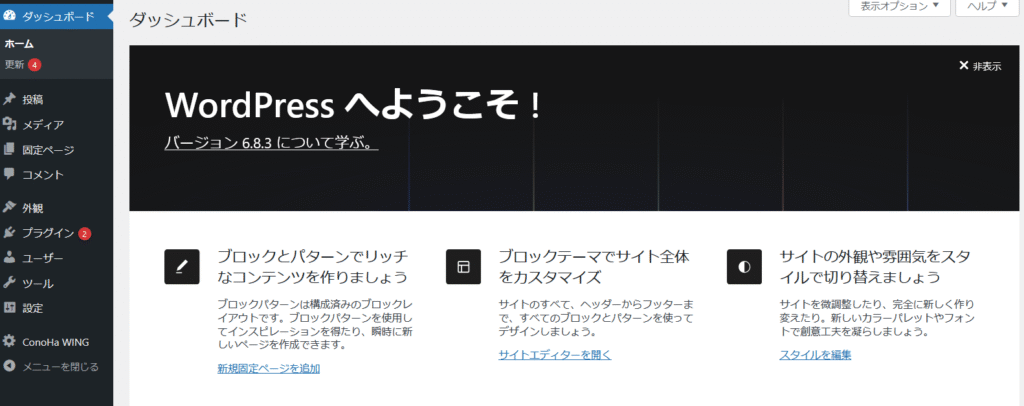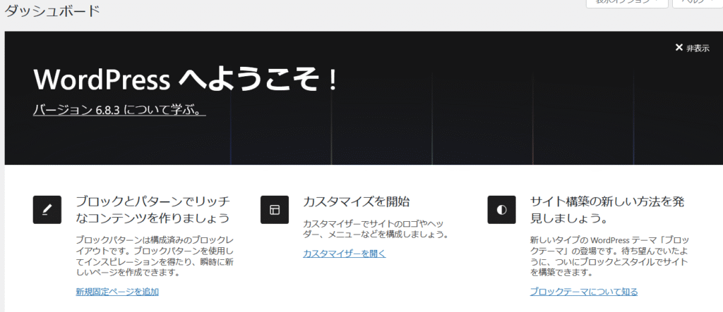 • /wp-admin にアクセスすれば記事投稿やカスタマイズが可能