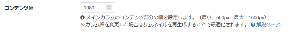 • コンテンツ幅(px):記事本文の横幅 → 例:1080px(標準)〜1200pxくらいが見やすい