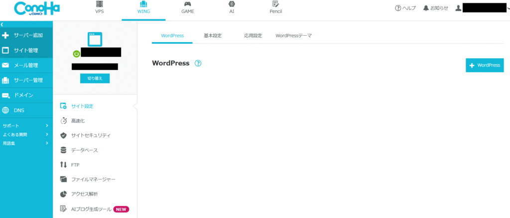 • 「+アプリケーション」または「WordPress」タブを選択します