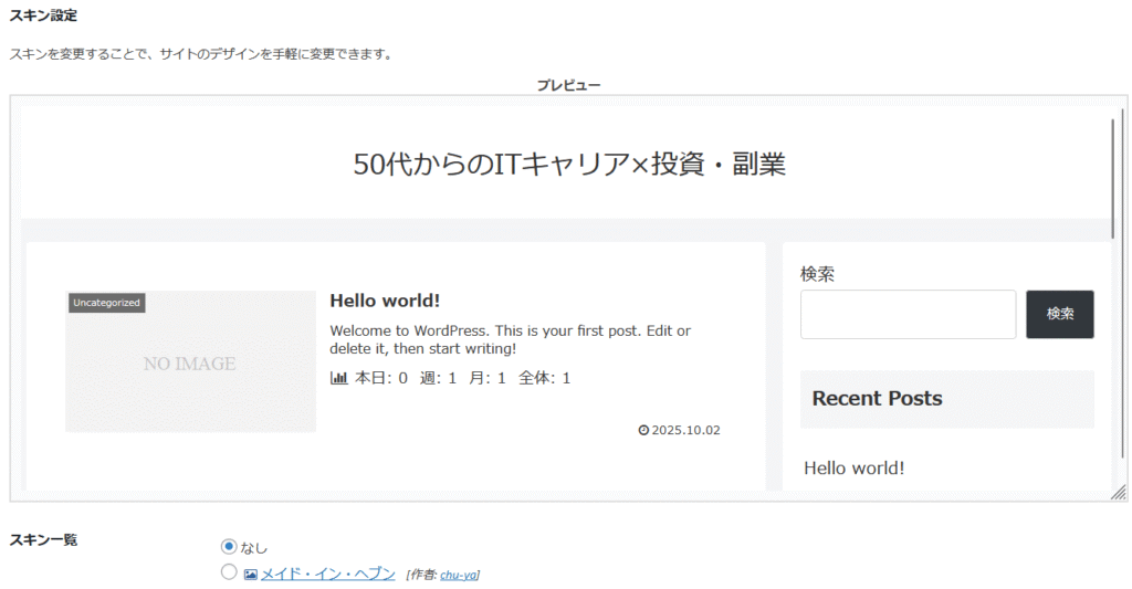 好きなデザインを選択(「なし」はデフォルトわいひらスキン)