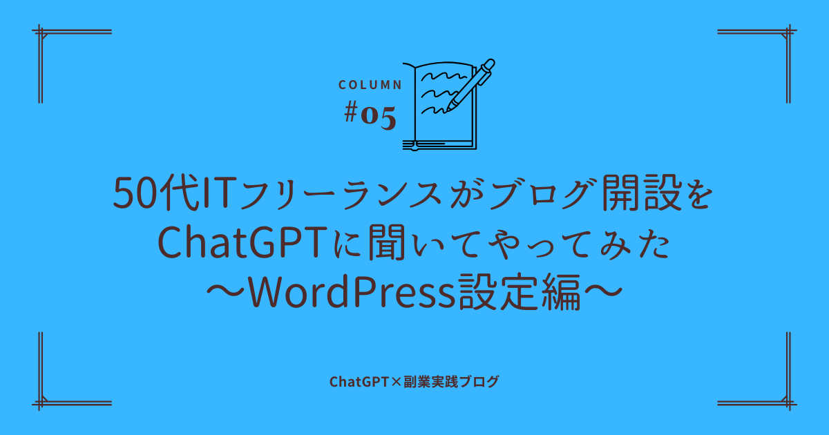 第5回 「50代ITフリーランスがブログ開設をChatGPTに聞いてやってみた~WordPress設定編~|月3万円を目指す実践記録」
